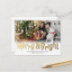 Personalizar esta hermosa y divertida luz y crujiente postal de Navidades horizontales modernos y sencillos, diseñada con un falso texto dorado Merry y Bright on white. Por favor, tenga en cuenta que el oro es una impresión a color y no es un Relieve metalizado de oro real. Reemplace la imagen de la plantilla con su foto favorita y cambie toda la información de la plantilla de ambos lados por la suya propia. Este diseño tiene una redacción: "Te deseo una feliz temporada de vacaciones y un año nuevo lleno de paz y amor", pero puedes cambiar las palabras con las tuyas. *Crédito de la plantilla de la foto: © StephaniePetraPhoto