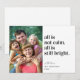 ¿Estás buscando la tarjeta de vacaciones perfecta que resume la locura de la vida cotidiana en tu familia? ¡Aquí lo encontrarás. Esta plantilla de foto fácil de editar puede ser personalizada con una foto favorita y tiene las palabras... todo no es tranquilo. Todo sigue siendo brillante. Si resume a tu familia (como la mía), ¡entonces tu búsqueda ha terminado! Puede imprimir las tarjetas de forma profesional por Zazzle y enviarlas a su puerta, o puede elegir la opción de descarga digital para imprimir en su casa, en su tienda de impresión local, o incluso enviar la tarjeta por correo electrónico o mensajero. ¡Podrías decidir que quieres a ambos! Todos los productos son creados por Zazzle y enviados a tu puerta dondequiera que estés en el mundo. Haga clic en el icono del camión pequeño para ver cuándo pueden entregar 🚚 Si necesita ayuda con su pedido, por favor envíe un mensaje al equipo de servicios al cliente de Zazzle a www.zazzle.com/about/ask para obtener ayuda. 💬