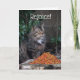 Las palabras dentro de esta tarjeta dicen, "Pascua es cuando suceden los milagros. Pascua feliz." En el frente de esta tarjeta es la palabra, "disfrute" y una fotografía (o abandonado) de un gato salvaje muy hermoso que mire para ser Coon de Maine de la parte. Este gato hermoso se está sentando en la hiedra que parece muy agradecida para la pila grande de comida que la gente muy bueno-hearted ha dejado en un tocón de árbol para él y de sus otros amigos del gato. En el izquierdo interior de esta tarjeta es el verso de la biblia a partir del 28:6 de Matthew que dice, "él no está aquí; él ha subido, apenas como él dijo. Venga ver el lugar adonde él pone." Una tarjeta perfecta para cada amante del gato.