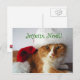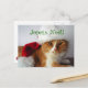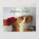 Esta postal del día de fiesta ofrece un gato anaranjado y blanco en un gorra de Santa, con el saludo francés "Joyeux Noël" (las Felices Navidad) en el top. Foto del diseñador.