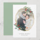 Elegantes tarjetas geométricas de vacaciones cuentan con tu foto favorita dentro de un marco inspirado en la piedra de la piedra de la piedra en un falso Relieve metalizado de oro, acentuado con hojas de color verde y bayas rojas. Personalice con sus nombres y un breve saludo de personalizado (mostrado con "amor y alegría") y añada dos fotos adicionales a la parte de atrás, junto con el año.