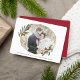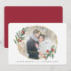 Elegantes tarjetas geométricas de vacaciones cuentan con tu foto horizontal o orientada al paisaje favorita dentro de un marco inspirado en la piedra gemela en un falso Relieve metalizado de oro, acentuado con hojas de color verde y bayas rojas. Personaliza con tus nombres o un saludo corto debajo.
