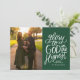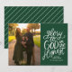 Esta tarjeta de foto de Navidad muestra a mano un sentimiento festivo "Gloria a Dios en lo más alto" en una simple paleta de color verde y blanco. Este diseño tiene un conocido saludo religioso. Puedes ajustar los colores a tu gusto y todo es personalizable, incluyendo la foto y el nombre.