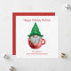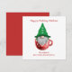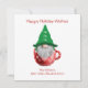 Gnome Red Green Holiday Desee Tarjeta Personalizada. Personalice este lindo gnomo en una taza. La plantilla está configurada para que añada el nombre de su familia y el saludo de personalizado.
