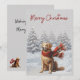 Golden Retriever en la nevada tarjeta de Navidad Merry.