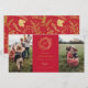Elegante monograma de corona de invierno dorado, tarjeta fotográfica de vacaciones 2 en rojo festivo. Características de la tarjeta que coinciden con el respaldo del patrón y varias líneas de plantilla para el saludo de su personalizado.