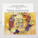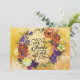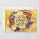 La inspiradora tarjeta de bienvenida plana de Acción de Gracias representa una hermosa acuarela rústica de otoño con color púrpura floral, naranja quemado, flores azules y amarillas y vegetación. En la parte trasera aparece la Biblia Verse Salm 136:1, "Den gracias al SEÑOR, porque es bueno. Su amor perdura para siempre".-