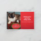Tarjeta fotográfica de saludo de festividad doblada para la colección de festividades Cat Santa Claws. Una tarjeta de vacaciones cómica que muestra tu felino favorito explicándole a Santa cómo funcionan realmente las reglas del regalo de los Navidades. En el frente, una burbuja de pensamiento del gato le dice a "Santa Claw" que no importa si ha sido "travieso o amable". Luego por dentro, otra burbuja de pensamiento informa a Santa que "esta es su casa, así que los regalos son de él de todos modos". El diseño incluye rojos y verdes brillantes y fuentes lúdicas. Añade una gran foto de tu gato en la solapa delantera y en el interior, y después agrega tu propio mensaje de Navidad.
