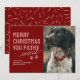 Disfrute de la encantadora nostalgia de la temporada festiva con nuestra lúdica carta de Navidades mascotas. Un fondo rojo profundo prepara el escenario para una preciosa foto de tu amado animal, con el título humorístico de 'Feliz Navidad, sucio animal'. Decorada con adorables estampados de pata y personalizada con sus nombres, esta tarjeta de vacaciones evoca sonrisas y recuerdos del pasado de Navidad.