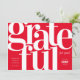 Envíe saludos de vacaciones a clientes y clientes de negocios con esta moderna y tipográfica tarjeta de vacaciones de negocios. Presenta un saludo atrevido y tipográfico "agradecido". Personalice esta tarjeta plana con el nombre de su personalizado, logotipo (blanco o claro), mensaje y año. Añadir un mensaje y un logotipo personalizado a la parte posterior de la tarjeta. Elija entre una amplia gama de tipos de papel. Seleccione la tarjeta rectangular de 5" x 7" o agregue una forma de borde de corte de tinta. Los elementos coincidentes están disponibles.
