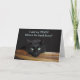 Esta tarjeta de pascua ofrece nuestro gato negro hermoso, guardabosques, mintiendo en una tabla de madera con su cabeza sobre el borde que le hace frente. Con los ojos verdes penetrantes del guardabosques mirándole, sus oídos inclinaron levemente la parte posterior y una mirada enfadada en su cara, esta tarjeta es perfecta para cada uno en Pascua.