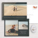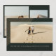Esta moda Save the Date presenta un marco de rayas grabadas en la parte superior izquierda, destacando una sola foto horizontal grande con una tipografía simple y moderna con los nombres de la pareja. La parte trasera tiene espacio para dos fotos adicionales en un lugar para compartir la fecha y ubicación de las próximas nupcias. El fondo verde oscuro del bosque se distingue de la multitud y crea una moda y un toque sofisticado.