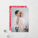 Desee a sus amigos y familiares unas vacaciones felices enviándoles nuestra tarjeta de foto de Blessed Script. La tarjeta navideña muestra tu foto favorita en la parte delantera con Blessed en un sobrenombre de escritura con letras a mano en tiza blanca. Personalice la tarjeta de vacaciones agregando un saludo personalizado y el nombre de su familia. El reverso de la tarjeta contiene dos fotos más dentro de un marco blanco, rectangular y un patrón rojo y blanco de bayas y follaje.