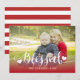 Bendiciones de vacaciones con la mano dejada | Tarjeta fotográfica de vacaciones - Rojo. Elke Clarke © Otros estilos y colores disponibles en www.zazzle.com/epclarke. Fuente de escritura blanca con la palabra "Bendecido" con el diseño de la foto de los corazones con un efecto rojo sombrío. Una manera perfecta de mostrar tu atesorada foto familiar. Una tarjeta de felicitación de vacaciones que tu familia y amigos apreciarán. Se pueden cambiar las rayas rojas y blancas en la parte posterior de la tarjeta bajo petición.