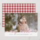 Comparte saludos de vacaciones con estas rústicas tarjetas de fotos navideñas de moda con tu foto favorita horizontal o orientada al paisaje. "Feliz Navidad" aparece como un sobrecoste de texto rojo delineado en blanco, en elegante tipografía de escritura con letras a mano. Personalice con su saludo de vacaciones personalizado, nombre(s) y el año a lo largo de la parte inferior. Las tarjetas cambian a un rústico patrón de manchas de búfalo al hacer coincidir las vacaciones en rojo y blanco.
