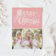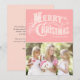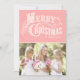 Tarjeta fotográfica navideña de personalizable con tipografía occidental de fondo rosado.