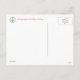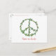 Postal con la guirnalda de la paz del acebo en frente, y las palabras "paz en la tierra". En la parte posterior es una guirnalda más pequeña, y las palabras "que le desean paz en los días de fiesta y siempre…"