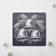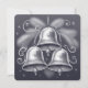 Una tarjeta de Navidades minimalistas con un delicado dibujo de tres campanas colgadas. El reverso de la tarjeta dice "Hark, How the Bells".