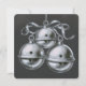 Una tarjeta de Navidades minimalistas con un delicado dibujo de tres campanas colgadas. El reverso de la tarjeta dice "Hark, How the Bells".