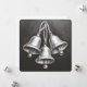 Una tarjeta de Navidades minimalistas con un delicado dibujo de tres campanas colgadas. En el reverso de la tarjeta se lee "Hark, How the Bells" (Hark, cómo las campanas), pero se puede personalizar según tu propio y sincero mensaje.