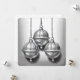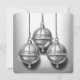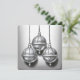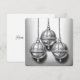 Una tarjeta de Navidades minimalistas con un delicado dibujo en línea de tres campanas decorativas colgadas. El reverso de la tarjeta dice "Hark, How the Bells".