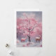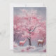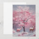 Hermosa pintura al óleo vintage de un árbol de navidad rosa con ciervo en invierno Navidades de nieve tarjeta de saludo de vacaciones. Colores de bonito muy vivos, tonos rosas, rosa claro y rosa oscuro