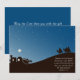 Este diseño presenta una silueta de los tres sabios, también conocidos como los tres reyes o magos, que montan camellos hacia Belén. Una estrella brillante brilla por encima y el cielo estrellado azul da tranquilidad a la imagen.
