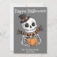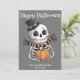 ¡Pase al mundo espeluznante de Halloween con nuestra cautivadora tarjeta de felicitación con tema de esqueleto! Perfecta para enviar saludos espeluznantes y lindos a amigos y familiares, esta tarjeta presenta un diseño de esqueleto espeluznante deliciosamente lindo que captura el espíritu de la temporada.