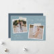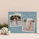 Añada elegancia informal a sus saludos de vacaciones con estas hermosas tarjetas diseñadas para alojar 2 fotos cuadradas. Las tiras de cinta le dan un aire fresco a este diseño sencillo y elegante (nota: la cinta es una imagen impresa, no un adhesivo real fijado al producto). "Feliz Navidad" aparece en escritura con letras blancas, con el nombre de tu familia y el año en la esquina inferior izquierda.