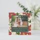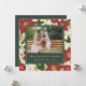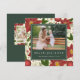 La elegante y festiva tarjeta fotográfica navideña presenta su imagen horizontal o paisajística favorita en un fondo botánico rojo y verde de invierno, incorporando flores de poinsettia roja, follaje verde y flores pequeñas blancas. "Paz, alegría, amor" aparece debajo, con tu(s) nombre(s) familiar(s) y el año en blanco-negro clásico sobre verde cazador. Personalice la parte posterior con dos fotos adicionales y un mensaje personalizado si lo desea.