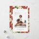 Comparte saludos de vacaciones con estas tarjetas de Navidades de fotos que incluyen tu juego de fotos favorito en un fondo de flores de vacaciones y productos botánicos en rojo y verde festivo. Un área de mensajes editable le permite personalizar su saludo de vacaciones con letras modernas. Agregue el nombre de su familia o nombres debajo.