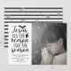 Hermoso Jesús blanco y negro es la razón de la carta de temporada con tipografía de escritura elegante. Añade tu propia foto en color o en blanco y negro y personaliza con tu mensaje y nombre o apellidos. La parte trasera tiene rayas blancas y negras con un hueco esparcido.