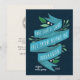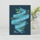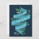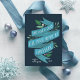 Elegantes tarjetas de vacaciones planas para tu negocio "puede amar y llenar tu corazón en Hanukkah" en tipografía con letras a mano en una cinta color azul acentuada con hojas verdes y bayas blancas. Personalice con su nombre o nombre de empresa y el año en blanco sobre un fondo azul marino, y añada un mensaje personalizado al dorso, junto con el logotipo de su empresa.