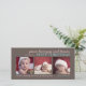 El mensaje de vacaciones dice 'paz, amor, alegría y besos, es la primera navidad' en este diseño muy dulce que se personaliza con el nombre de tu bebé y que incluye tres fotos. En rosa y verde azulado sobre un fondo marrón mocha de moda, es lúdico, divertido y un encantador primer saludo de navidad para la familia y amigos.