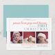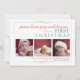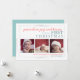 El mensaje de vacaciones dice 'paz, amor, alegría y besos, es la primera navidad del bebé' en este diseño muy dulce que incluye tres fotos de tu encantador bebé. En el coral y verde azulado sobre un fondo blanco crujiente, es divertido y hace de la imagen de su hijo el punto focal.