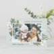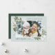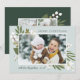 Elegantes tarjetas de fotos botánicas de vacaciones ponen tu foto delantera y centro horizontal o paisajista favorita, acentuada por estribos botánicos verdes, follaje, hojas y lirio blanco de las flores del valle, sobre un fondo verde de sabio pálido. Añade el saludo de sus Navidades personalizados (mostrado con "alegre todo"), sus nombres y el año. Personalice el reverso con dos fotos adicionales sobre un fondo verde de caza profundo que contrasta. Una elegante y festiva tarjeta fotográfica de vacaciones que gustará a todos en su lista de Navidades de esta temporada!