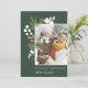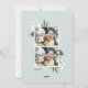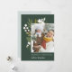 Elegante tarjeta de foto botánica navideña presenta su foto vertical favorita, alineada a la derecha para un aspecto moderno y flanqueada por estribos botánicos verdes, follaje, hojas y lirio blanco de las flores del valle, sobre un rico fondo verde cazador. Añada el saludo de sus Navidades personalizados (mostrado con "alegría y bendición"), sus nombres y el año. Personalice el reverso con dos fotos adicionales sobre un fondo verde jaula pastel que contrasta. Una elegante y festiva tarjeta fotográfica de vacaciones que gustará a todos en su lista de Navidades de esta temporada!