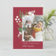 Elegante tarjeta de foto botánica navideña presenta su foto favorita, alineada a la derecha para un aspecto moderno y flanqueada por estribos botánicos verdes, follaje, hojas y lirio blanco de las flores del valle, sobre un rico fondo carbonífero fuera de negro. Añada el saludo de sus Navidades personalizados (mostrado con "saludos de temporada"), sus nombres y el año. Personalice el reverso con dos fotos adicionales sobre un fondo verde jaula pastel que contrasta. Una elegante y festiva tarjeta fotográfica de vacaciones que gustará a todos en su lista de Navidades de esta temporada!