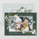 Elegantes tarjetas de fotos botánicas de vacaciones colocan tu frente y centro de fotos horizontales o paisajistas favoritos, acentuados por brotes botánicos verdes, follaje, hojas y lirio blanco de las flores del valle, en un rico fondo verde cazador. Añade el saludo de sus Navidades personalizados (mostrado con "alegre todo"), sus nombres y el año. Personalice el reverso con dos fotos adicionales sobre un fondo de sabio pálido que contrasta. Una elegante y festiva tarjeta fotográfica de vacaciones que gustará a todos en su lista de Navidades de esta temporada!