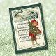 Aquí hay una hermosa tarjeta de Navidades hecha con una vintage carta de arte de un niño de la época victoriana vestido con una capa roja y patatas de punto marrón que llevan un árbol de Navidad. La imagen se coloca delante de las palabras y la música para "Away in A Manger". La imagen ha sido limpiada y colocada sobre un fondo verde oscuro. Es divertido celebrar las vacaciones a la antigua manera! La parte interior izquierda de esta tarjeta está a juego con el verde, mientras que el lado derecho sostiene su mensaje y firma fácil de personalizar.
