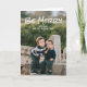 Tarjeta de felicitación fotográfica Be Merry Holiday con un diseño de texto blanco con las palabras "Be Merry" en un guión escrito a mano. Esta elegante tarjeta fotográfica de diseño de tipografía se puede personalizar fácilmente con su propia foto y un saludo de vacaciones personalizado. Para obtener más opciones de personalización, haga clic en Personalizar. Fotografía © Storytree Studios, Stanford, CA