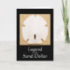 El poema Legend of the Sand Dollar está escrito dentro de esta tarjeta, una fotografía de un dólar de arena en un playa de arena suave es la cubierta.