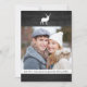 ¡Envíe a sus amigos y familiares una tarjeta de foto rústica y de vacaciones para calentarlos este invierno! La hermosa tarjeta fotográfica incluye fondo de grano de madera negra, ciervo blanco y marcadores de posición para la foto y el texto de tu personalizado.