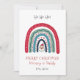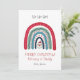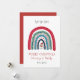 Una linda tarjeta de Navidades caprichosos para mamá y papá del bebé, con Santa Claus y el arco iris de Navidades. Añade el nombre de tu bebé. Sólido rojo en la parte posterior de la tarjeta.