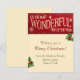 Aquí hay una atractiva tarjeta de felicitación plana de vacaciones que es elegante sin el brillo normal. Presenta en la parte superior una señal anticuada y angustiada de oro rojo y pálido con el texto Es el momento más maravilloso del año, y algunas imágenes dispersas de copos de nieve. Las dos terceras partes inferiores de la tarjeta contienen el texto de saludo personalizado. En la parte delantera, dos estribos de verde y bayas rojas completan la decoración. La parte trasera de la invitación es crema clara. Todo el texto puede ser personalizado para satisfacer sus necesidades.