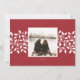 Tarjeta de Navidad simple y elegante que enmarca tu foto horizontal con un borde de hojas y bayas de acebo blancas. Personaliza con un saludo de Navidad o festivo (mostrado con "alegría, paz, amor") y tus nombres debajo. Agrega una foto adicional en la parte trasera sobre un fondo rojo de arándano festivo con una franja de follaje de acebo a juego.