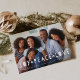 Comparte tu foto favorita en esta cédula festiva, cubierta con "alegría, paz, amor" en letras blancas recortadas. Personaliza con tus nombres y el año que viene.