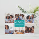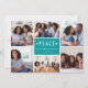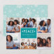 Comparte seis fotos favoritas con nuestra cédula de festividades. Las fotos están distribuidas en forma de collage alrededor de un vibrante centro acuático que dice "paz" con letras blancas recortadas. Personaliza con tus nombres y el año que viene.