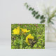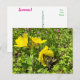 ¡Postal de mariposa en verano! Heredero amarillo, primarosa, flores con mariposa monarca amarilla y flores de campo coloridas. Fotografía original de Diane Heller, ©️ Diane Heller 2025.