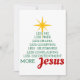 Este astuto gráfico en forma de árbol de Navidad está formado por la Estrella de los Navidades y las palabras: "Menos Yo, Menos Orgullo, Menos Drama, Menos Sorpresa, Menos Egoísmo, Menos Quejamiento, Menos Descontento, ¡Más Jesús!" Ayuda a celebrar la temporada de los Navidades y a mantener a Cristo en sus Navidades y celebraciones con este diseño que invita a la reflexión. El "Más Gráfica de Árbol de Navidad de Jesús" se ve aquí en una tarjeta de Navidad plana, y se puede encontrar en otros productos en mi tienda Zazzle, así como en la colección más gráfica de árbol de Navidad de Jesús.